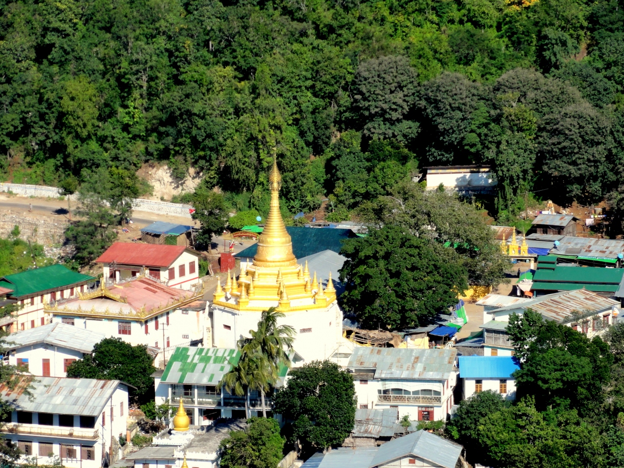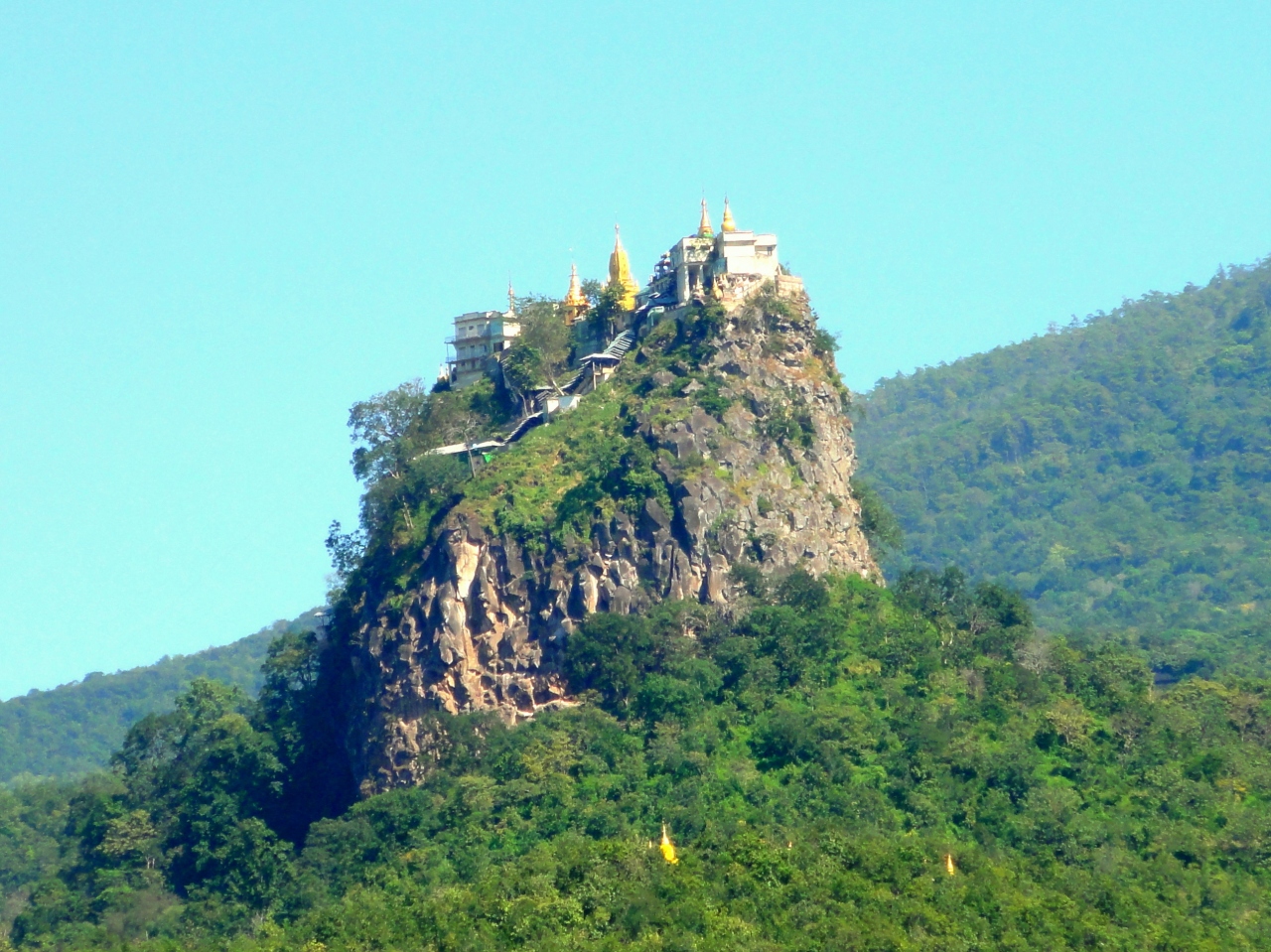 ポッパ山は、標高1518mで、ポッパ山の中腹にはタウン・カラッと呼ばれる標高737mの面白い形をした山があります。タウン・カラッの上には、パゴダが建っています。そこへは、750段以上の階段を徒歩で上って行きます。