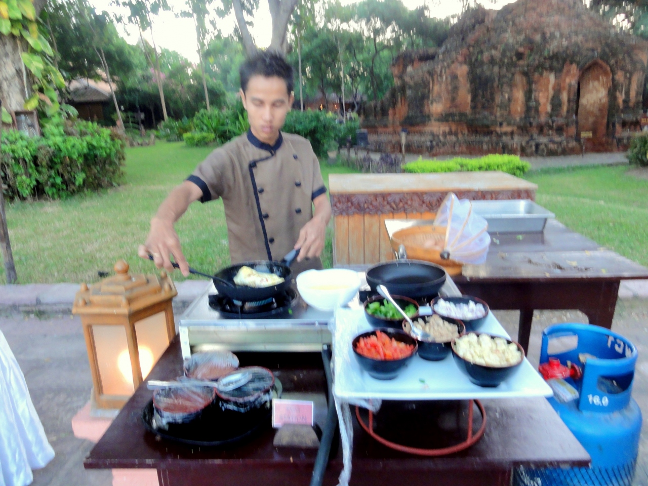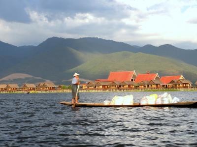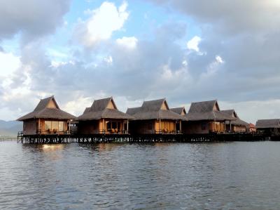 バガンでの2連泊のホテルです。朝夕の食事は、湖の見える外で。モーニングランチも、清々しい空気の許で。夕刻は、日の沈みかけた湖を眺めながら、幻想的な雰囲気を味わいながらの、とても趣のある素敵なホテルでした。
