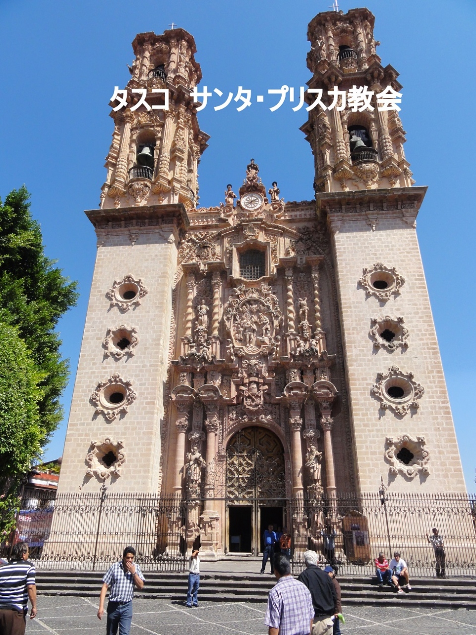 タスコの一番の見ものは、鉱山主ホセ・ボルダの寄贈したサンタ・プリスカ教会です。ボルダが鉱山で得た富をつぎ込んで作ったというサンタ・プリスカ教会は、見事な黄金教会で、メキシコバロックの最高傑作であると言われています。