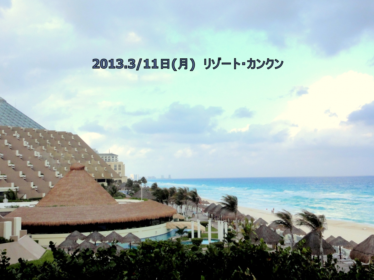 今晩は、メキシコの旅、最後の素敵なカンクンのホテルでの宿泊です。周りはビーチに囲まれ、ホテルの中も物凄くゴージャスなつくりで、やはりここは、新婚旅行のメッカだと思わされるだけの、素晴らしいホテルのたたずまいでした。