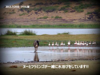 以前は、湖全体をピンクで埋め尽くされるほどのフラミンゴの大群を観ることが出来たそうですが、近年は、地球の温暖化や環境破壊等で、フラミンゴの餌であるスピルリナが少なくなってきて、フラミンゴがここナクル湖に余り寄り付かなくなってきたそうです。