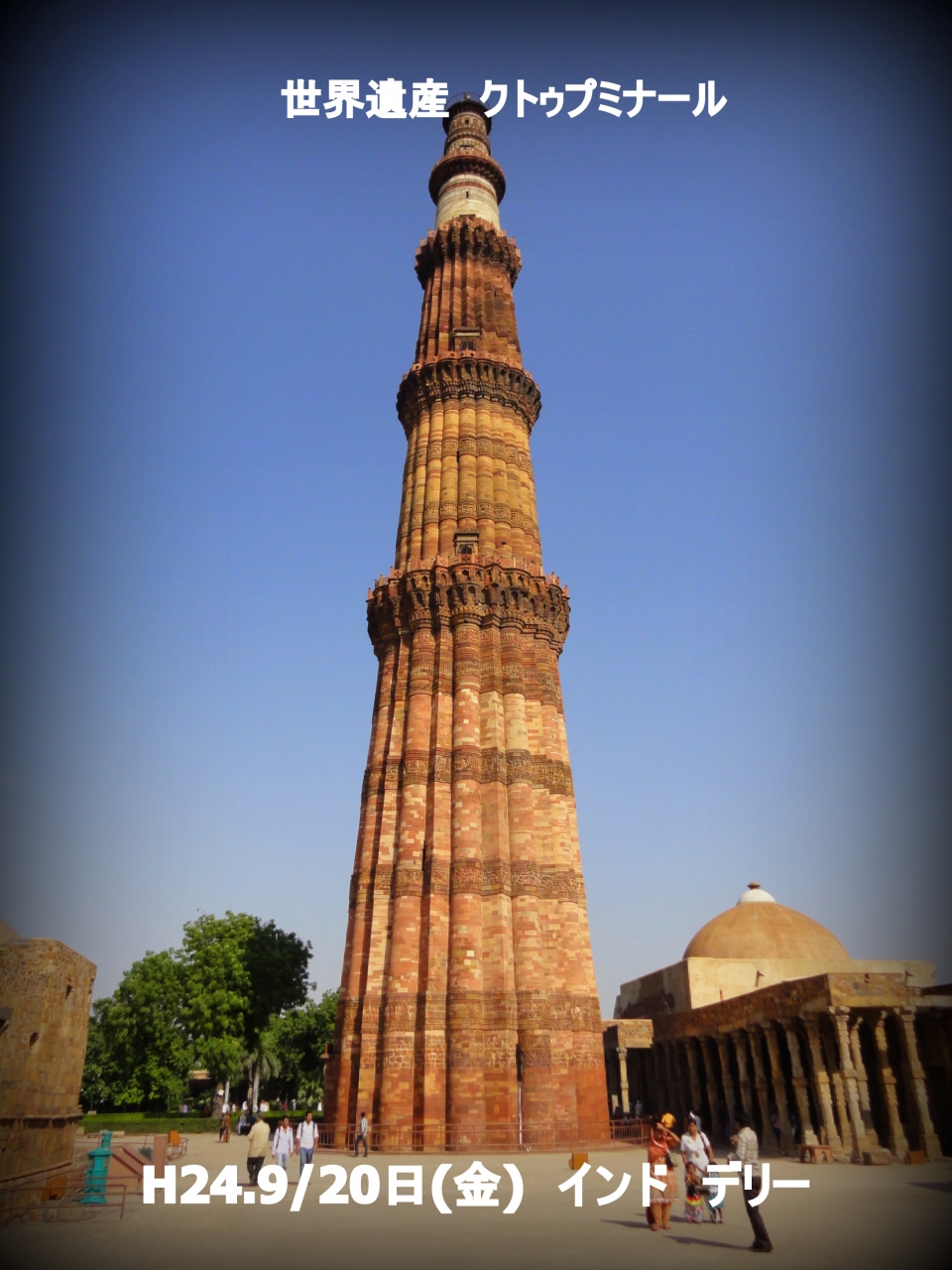 ヒンドゥー、イスラーム両様式が混ざった高さ72.5mの塔です。隣にはインド初のモスク跡があります。