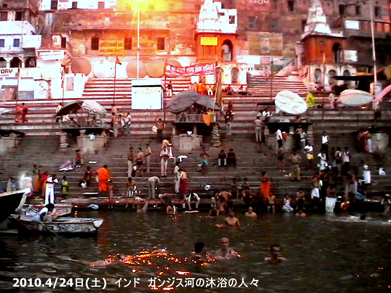 早朝3時に起き、5時からガンジス河の日の出鑑賞ボートクルーズへ出かけました、早朝だというのに、ガンジス河へ沐浴に来る人達でごったがえしていました。この聖なる河で沐浴している人、泳いでいる人、洗濯している人、片や亡くなった人を火葬している人、この何とも言えない不可思議な光景。世界広しといえども、このような光景は、ここガンジス河でしかみることは出来ないでしょう!!