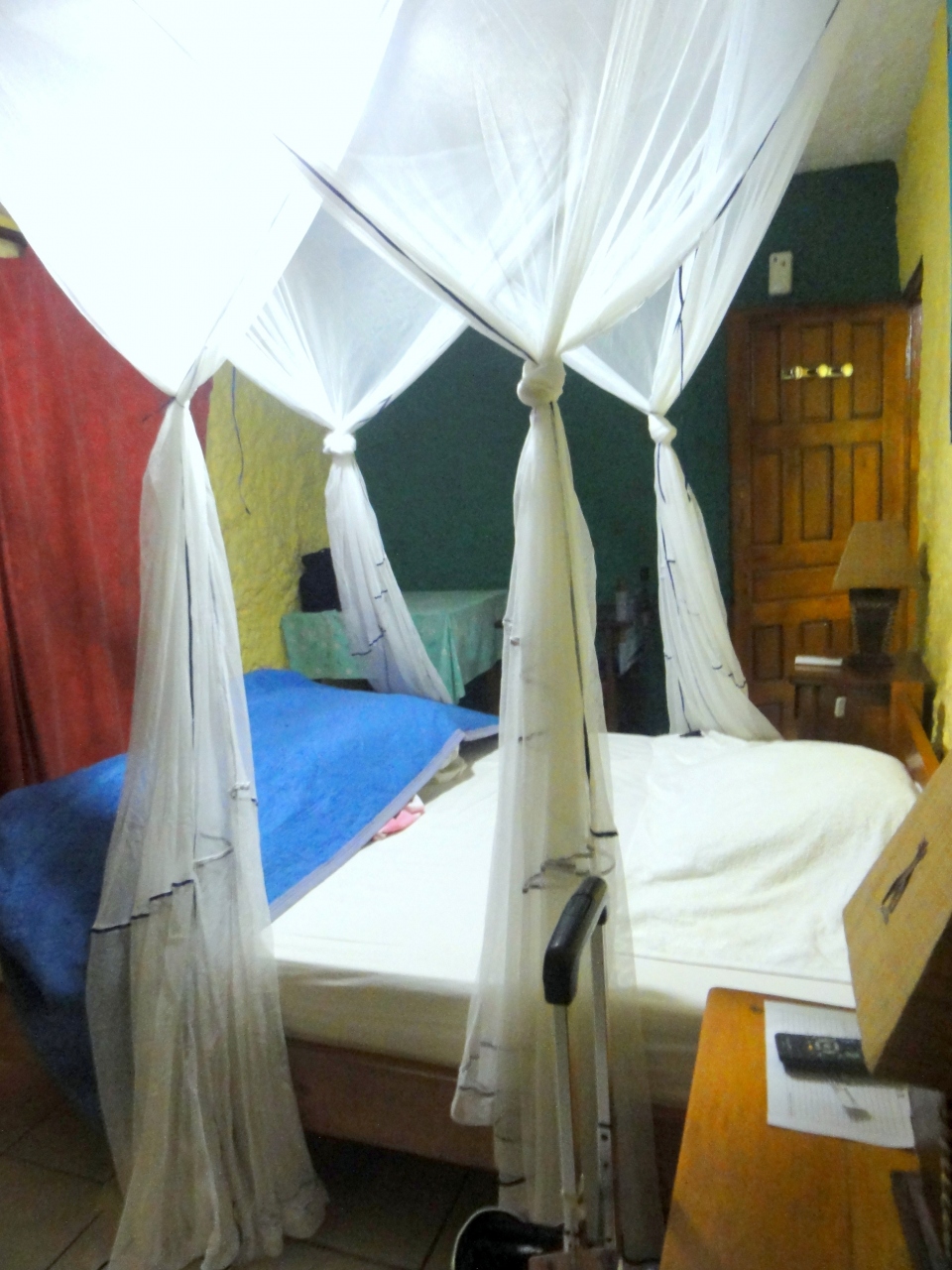 マダガスカル3日目の宿泊は、ムルンダヴァの「バオバオカフェ」ホテルです。川辺にあるこじんまりとしたなかなか洒落た感じのするホテルです。マイルームはベットでいっぱいになる位のとても小さなお部屋でしたが、安眠出来ました。