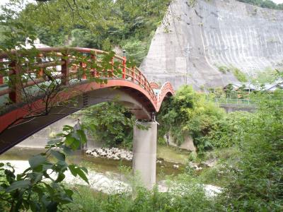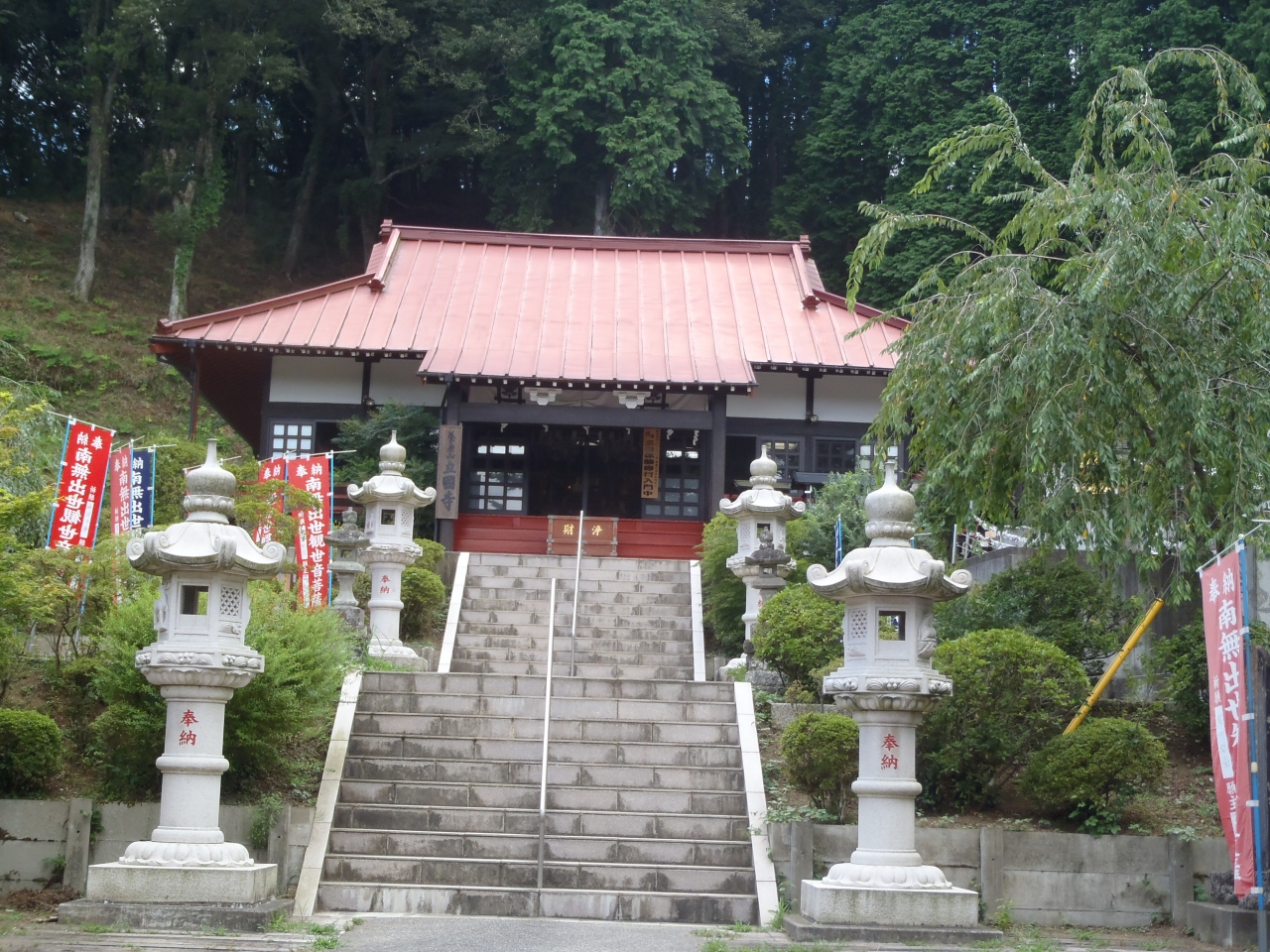 養老川にかかる太鼓橋を渡り、険しい山道を登り、滑る洞窟を抜けると山の上にあります。