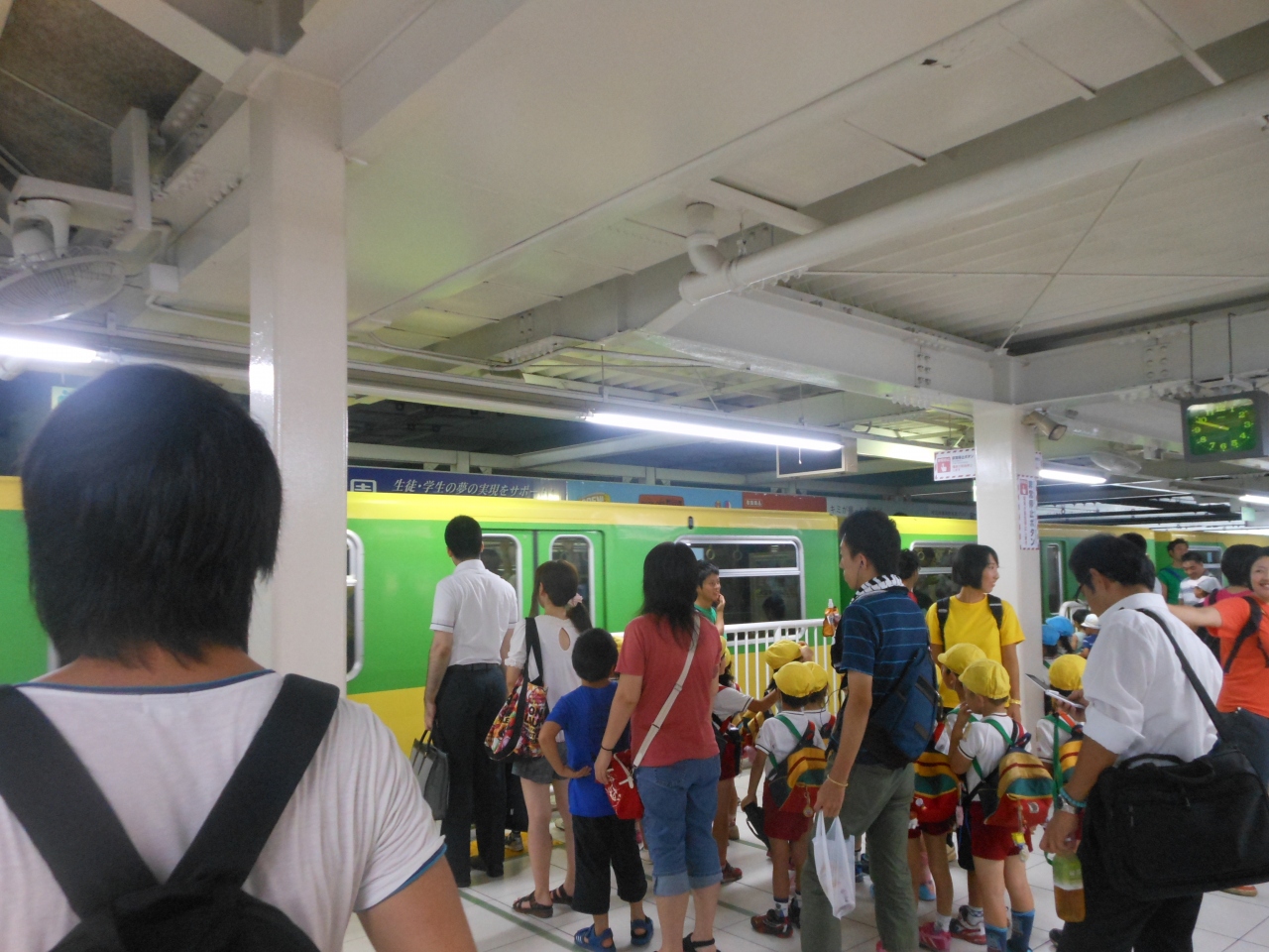 ホームが狭いので、鉄道博物館の開閉館時には混みます。