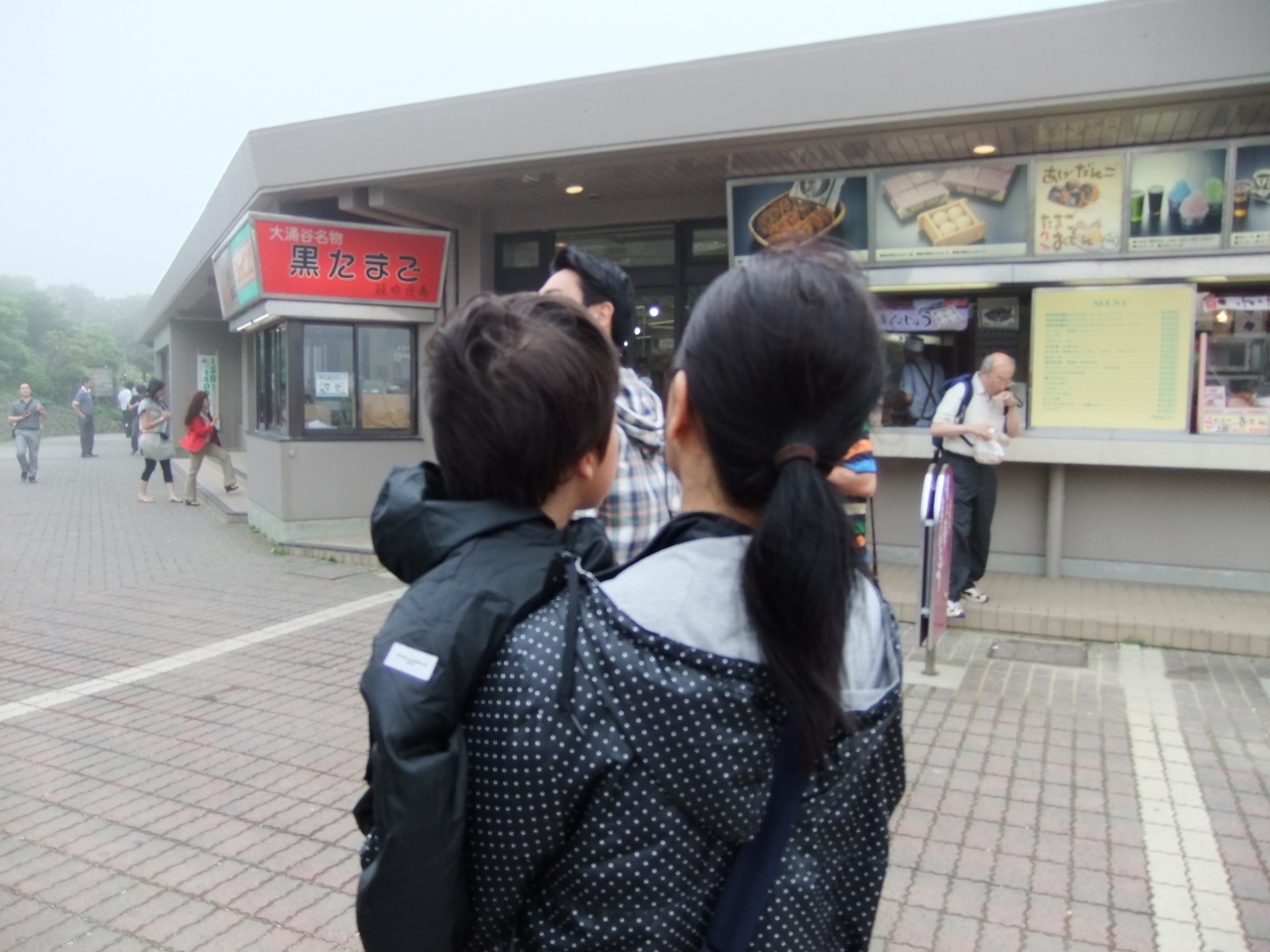 雨、霧の中を大涌谷に行きました。小雨だったのですが霧で何も見えず、温泉卵を買おうとしましたが、丁度、山頂では品切れ、さんざんでした。でも5歳の息子でも上れましたし、交通の便は最高です。晴れると早雲山や芦ノ湖も見え絶景なので残念でした。