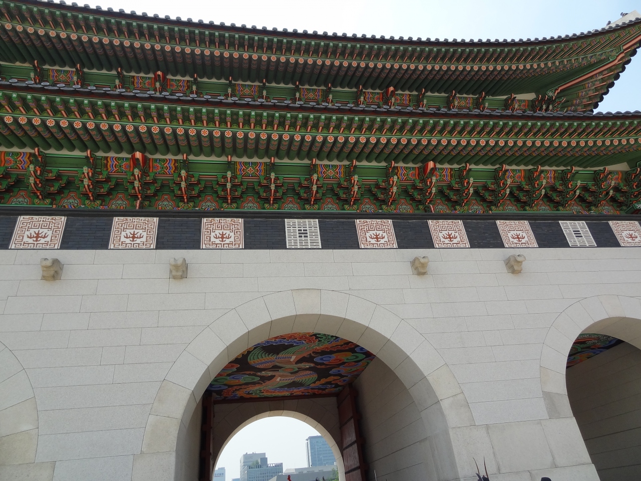 衛兵さんが居ます。昔の李氏朝鮮時代の服装でしょうか。気軽に(というか何も聞かずに)隣に並んで写真を撮ってくれます。