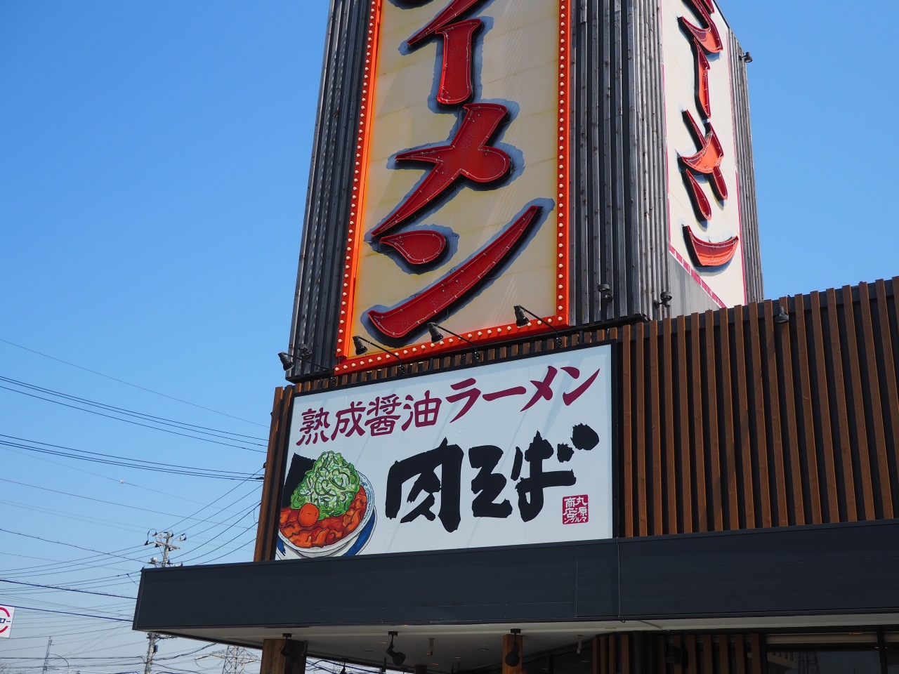 2020年4月に訪れた際の記事です。大盛り+0.5玉、替え玉1玉が同じ値段なんて知りませんでした。ガッツリ系に慣れているので、大盛りでは足りない訳です。替え玉だと満腹になります。ゴテゴテ載せるのは嫌なのでシンプルな肉そばと替え玉が一番かな。