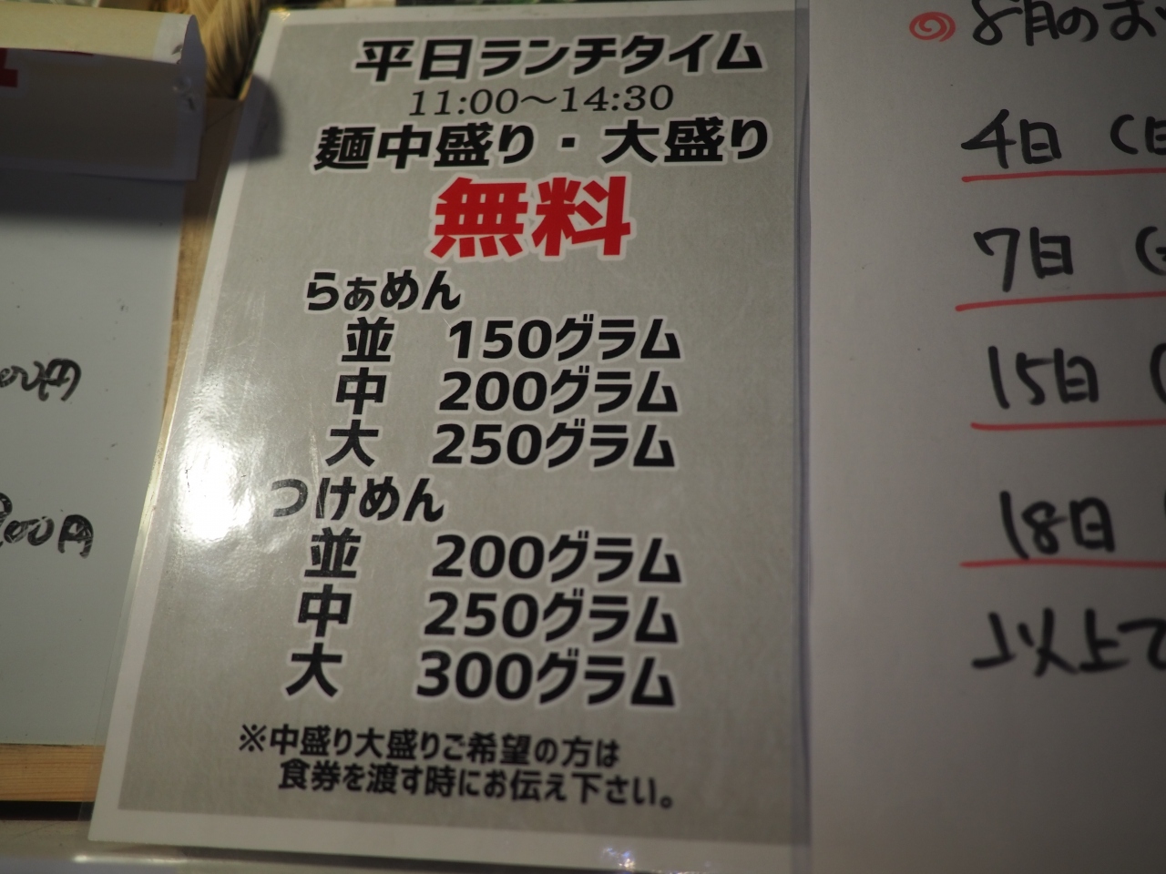 中盛300gと普通盛り200gが同じ料金なのは良いですね。ただし、1オペですので、そのロットに入れなかった場合、30分は待つことになります。ニンニクは多く盛られるので、私も年で行けなくなりました。テーブルの上にある方が便利ですね。- 旅行時期