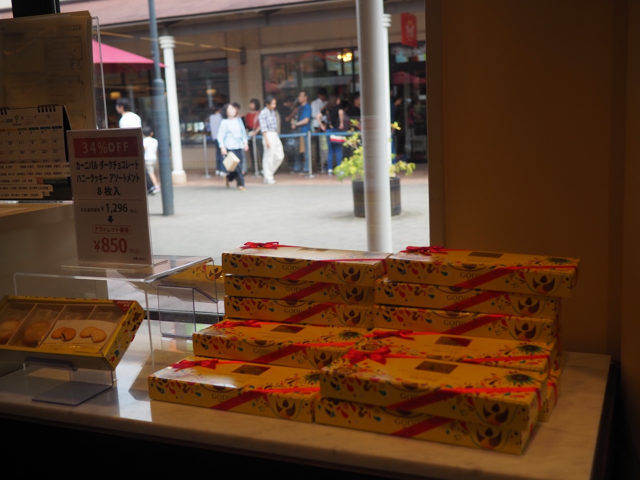 ゴディバはアウトレットで買うことが多いですね。妻がお使い物に良く買っていますね。この時も買っていました。元の値段が怪しくなりますが、期限が短いですね。物的には銅なんですかね。大学の頃貰ったときはうれしかったが。