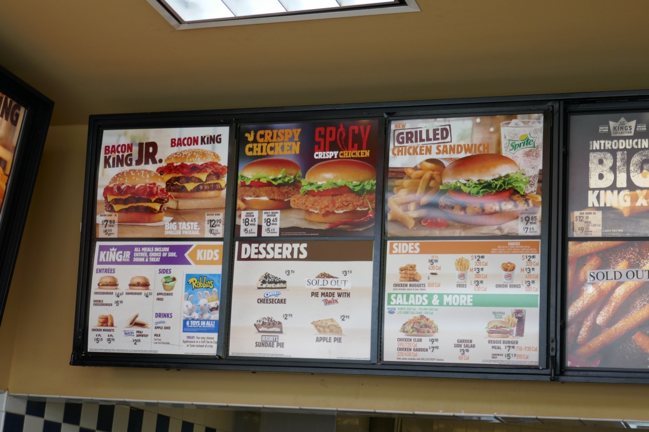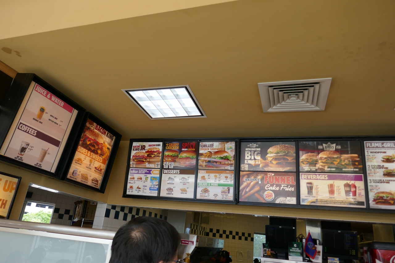ホテルの近くにあるバーガーキングを紹介します。値段は日本も一緒ですね。ワッパーで5ドルします。セット物だと8ドル。ただし、Jrでないので1個で満足しますね。この時は、店員にバーガーの数を間違えられましたね。やはり海外なのでいい加減ですね。