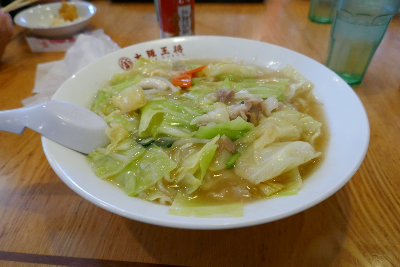 2019年4月に浜田駅の目の前にある大阪王将で昼を食べました。電車の時間待ちが1時間ありましたが、地方店なので、回転が悪いです。ちゃんぽんは、九州風を期待しましたが、普通のちゃんぽんでした。麺が伸びていて失敗ですね。
