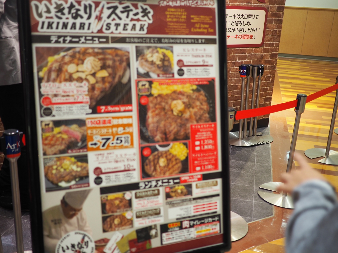 いきなりステーキがアリオ蘇我に出来たと言うので行ってみました。この時は乱切りカットステーキがありお得に食事が出来ましたね。無い時はリブロースで6.7円/gなのでお得感は少ないですね。最近は座席に座れるのが良いですね。