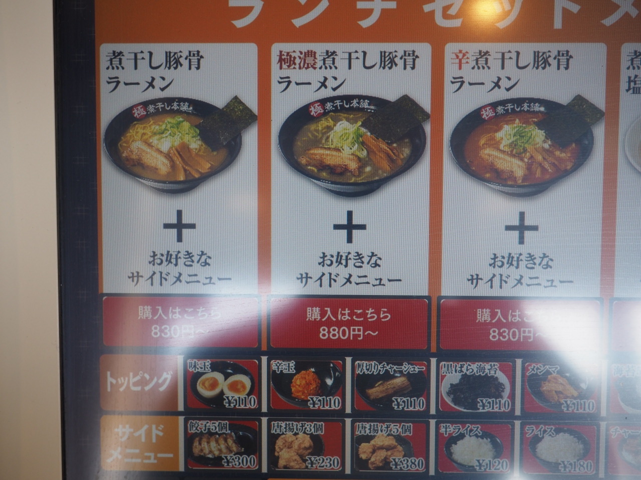 ハーバーシティ蘇我にある極煮干し本舗さんを紹介します。味は普通に美味しいですが、極煮干しラーメンは煮干しの味が強すぎて好き嫌いが分かれそうですね。麺量はやや少なめなので、大盛と思えば180円で高すぎます。土曜日もランチセットがあるのかよくわからない所もマイナスですね。