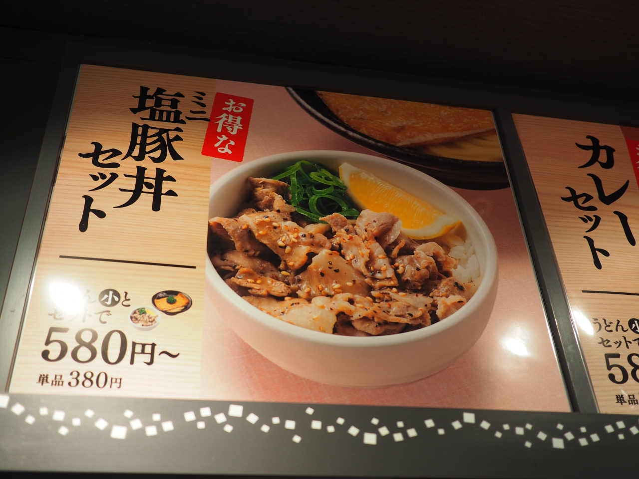 うどん定期券があったせいで、凄く混雑していました。この定期券でてんぷら1つ無料でした。牛丼は80円引きになります。時どきやっていますね。この日はこれのおかげではなまるうどん劇混みでしたね。うどんは丸亀製麺よりはフニャフニャでダメです。