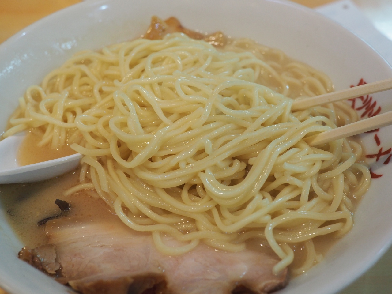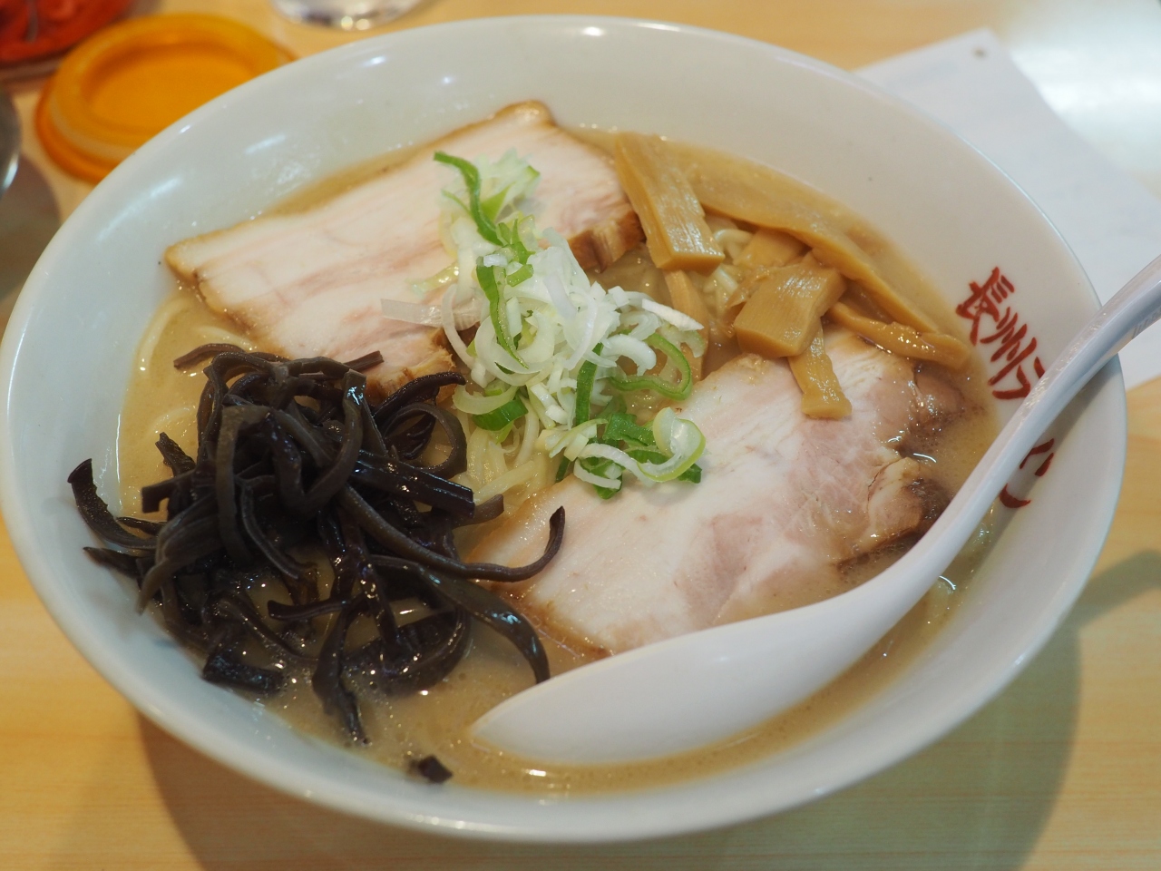 長州ラーメン万龍軒を紹介します。ここのラーメンは博多ラーメンと同じ豚骨ラーメンですが、麺の太さが選べます。細麺だと博多ラーメン並、中太麺だと手打ちの麺になります。断然、中太麺ですね。麺量も160gで多いですし、満腹になれる豚骨系ラーメンです。