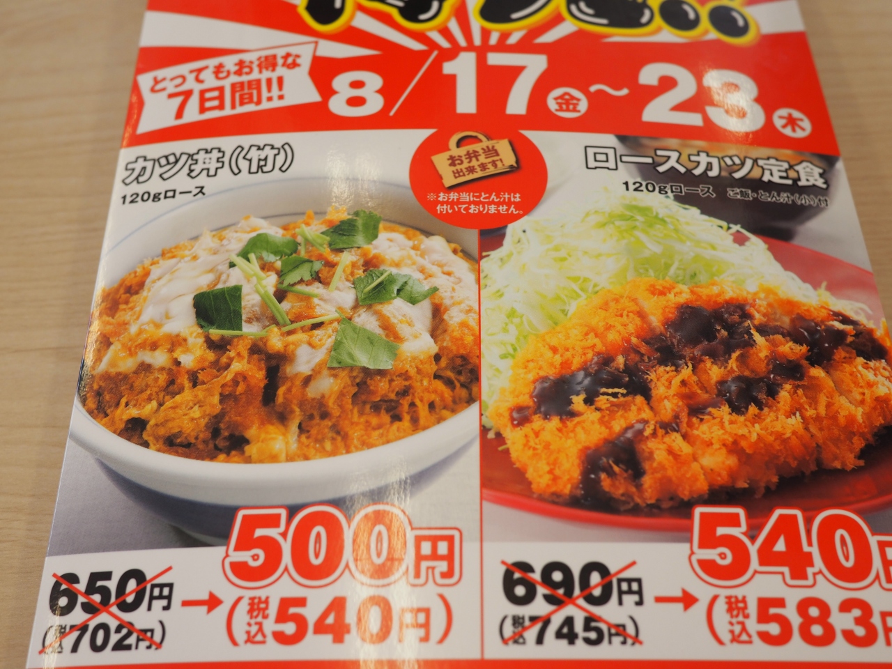 かつや稲毛海岸店を紹介します。夏は割引サービスが多く、この日はロースかつ定食が安く食べられました。フライヤーに秘密がある様で、外はサクサク、中はジューシーなとんかつが安定して出されます。12時頃は激混みの時もありますが、11時代は比較的すんなり入れます。