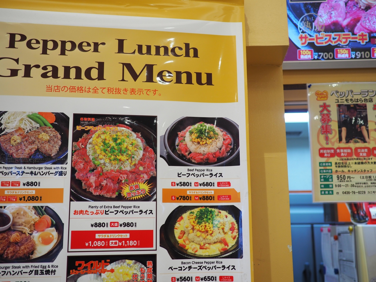 ペッパーランチ、ユニモちはら台店を紹介します。クーポンを買ったので、実質500円程度で食べられます。店はいきなりステーキと同じ会社ですね。ただ肉マイレージは付きません。お手頃な値段で焼肉定食とまではいかないか。味も自分でつけるので良いです。