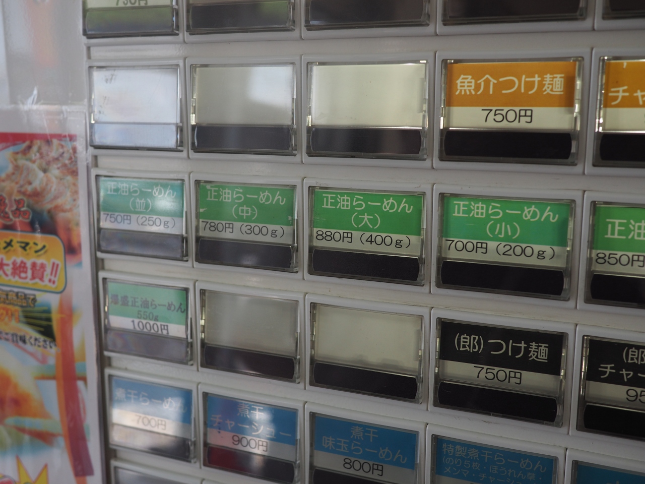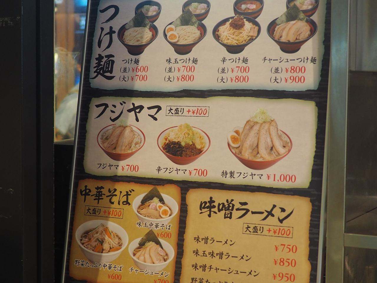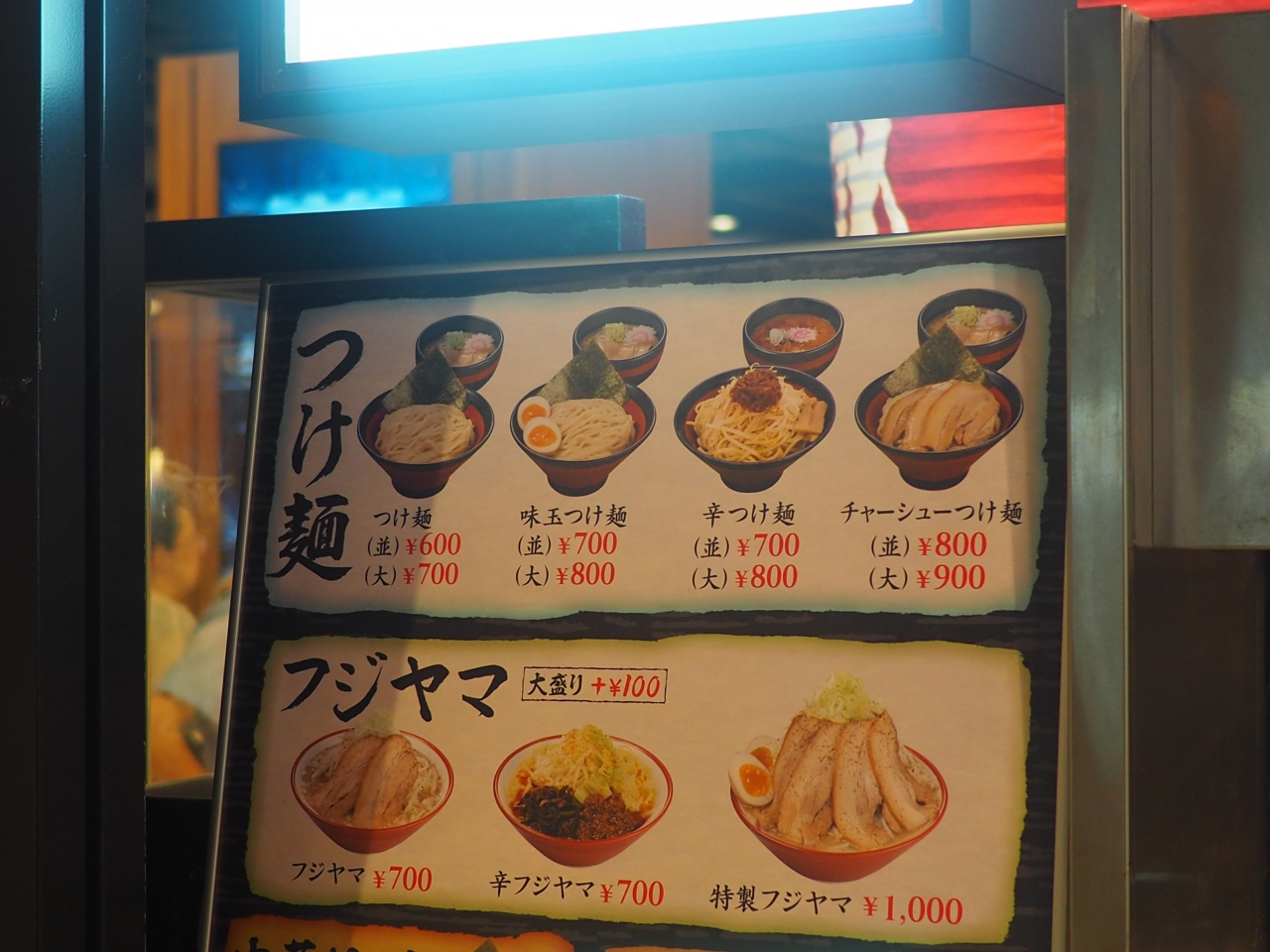 2018年夏に訪問時の記録。最近行ったですが、値段は変わらず。フジヤマが一番人気、次はつけ麺ですね。特にフジヤマは女性に敷居が高い二郎系がフードコートならではで食べられます。値段も700円とお手頃でお奨め出来ます。なお、野菜のマシとかは出来ません。