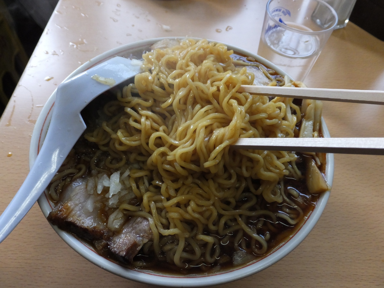 太麺なんですが、固茹ででのさほど固くなく、すんなりと食べられます(食べ慣れている感も否定できませんが)。