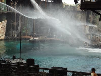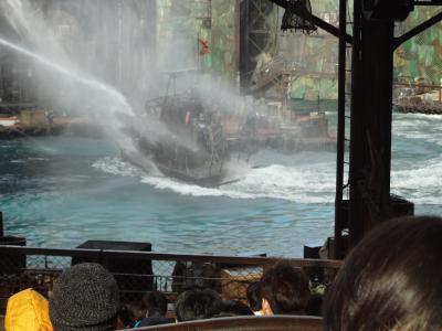 ユニバーサルスタジオジャパンにあるアトラクションで結構人気があります。最初のうちは恐竜たちとの戯れで、良いのですが、最後にはバシャッと水に落ち、濡れます。冬はカッパ持参か、後部の方に乗ることをお奨めします。