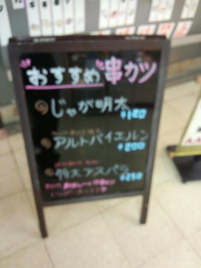 野菜系の串カツが旨く、アスパラ(250円)とトマト(120円)は絶品でした。