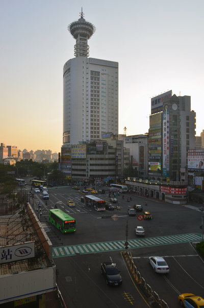 - 台中駅前。長距離バスのバス停を降りたら、台中駅をそのまま越えてカーブの最後がプラザホテル。駅やバス乗り場に近くて便利でわかりやすかったです。