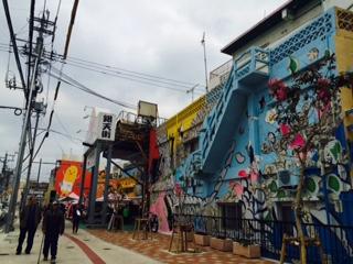 - 壁画付近はフラットです。商店街アーケード先にはバリアフリー対応の公衆トイレあり。