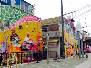 沖縄市のコザ十字路にコザ十字路絵巻が登場!沖縄や沖縄市の歴史が建物の壁画いっぱいに描かれ、かなり派手なことになっています。そばの銀天街商店街は少しの惣菜屋さんと食堂、パーラーがある程度ですので人通りは少ないです。少々マニアックな場所なのでにぎやかな那覇のような雰囲気とは異なりますのでご了承ください。なおバス停は十字路四方にあり、コザ十字路を拠点とした東西南北の拠点のため、かなり那覇方面へのバスは多いです。コザ高校通りに面した、商店街の外側、六曜舎は古くからある元黒人barだったという今はジャズ喫茶で美味しい珈琲と食事がかなりおすすめです。六曜舎/〒904-0011 沖縄県沖縄市照屋1丁目13−7