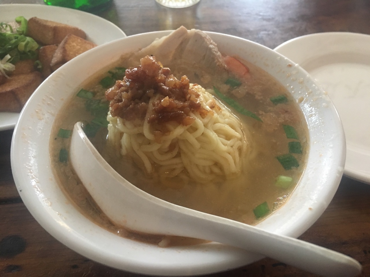 雲呑麺に芥蘭が激ウマで、旅のスタートに最高のランチになりました^_^