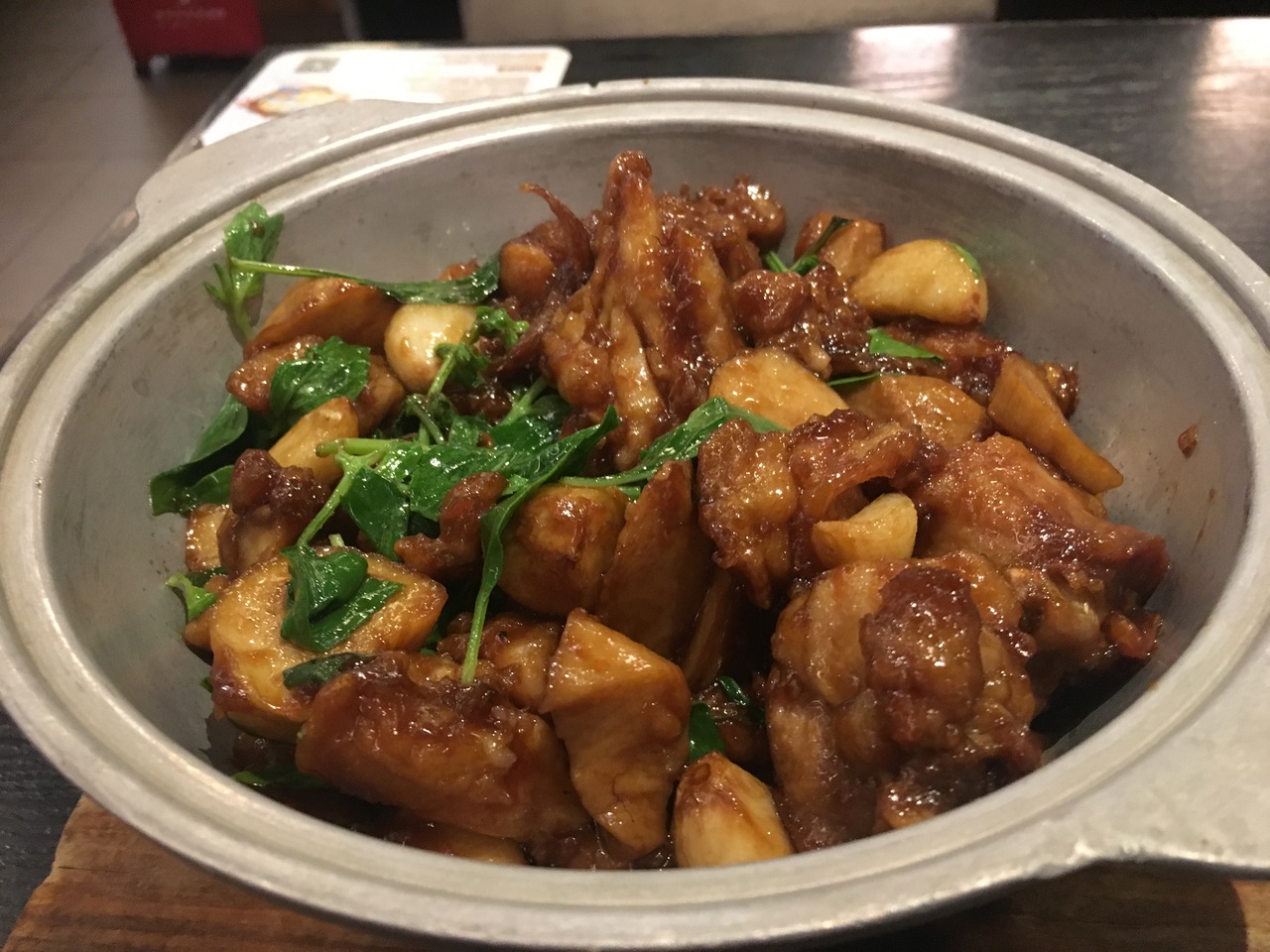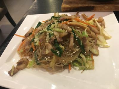 選んだのは、三杯鶏(鶏肉の甘辛炒め煮)と豚肉入りの焼きビーフン