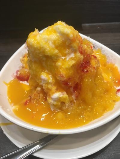 暑かったので好きなマンゴー系のかき氷を注文しました。マンゴーの果肉にゼリーとカラフルなかき氷でしたが、甘さもスッキリで凄く美味しかったです^_^