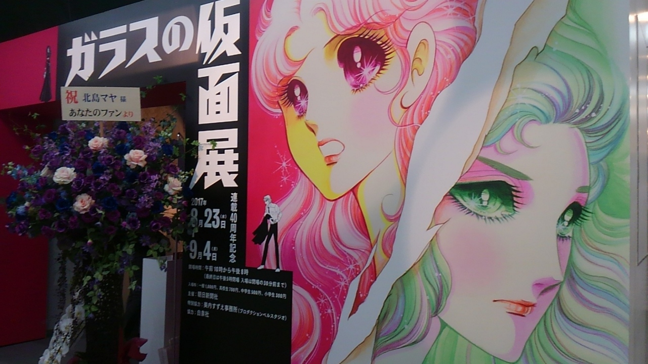 昨年 連載40周年を迎え、名場面の数々を原画とカラーイラストで紹介するガラスの仮面展が松屋銀座のイベントスクエアで行われていました。