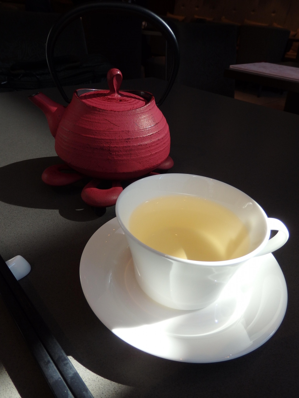 「わぁ♪可愛い」と喜んでいたら、カップに1杯注ぐと ウエイターさんはポットを持ってかえってしまった…。