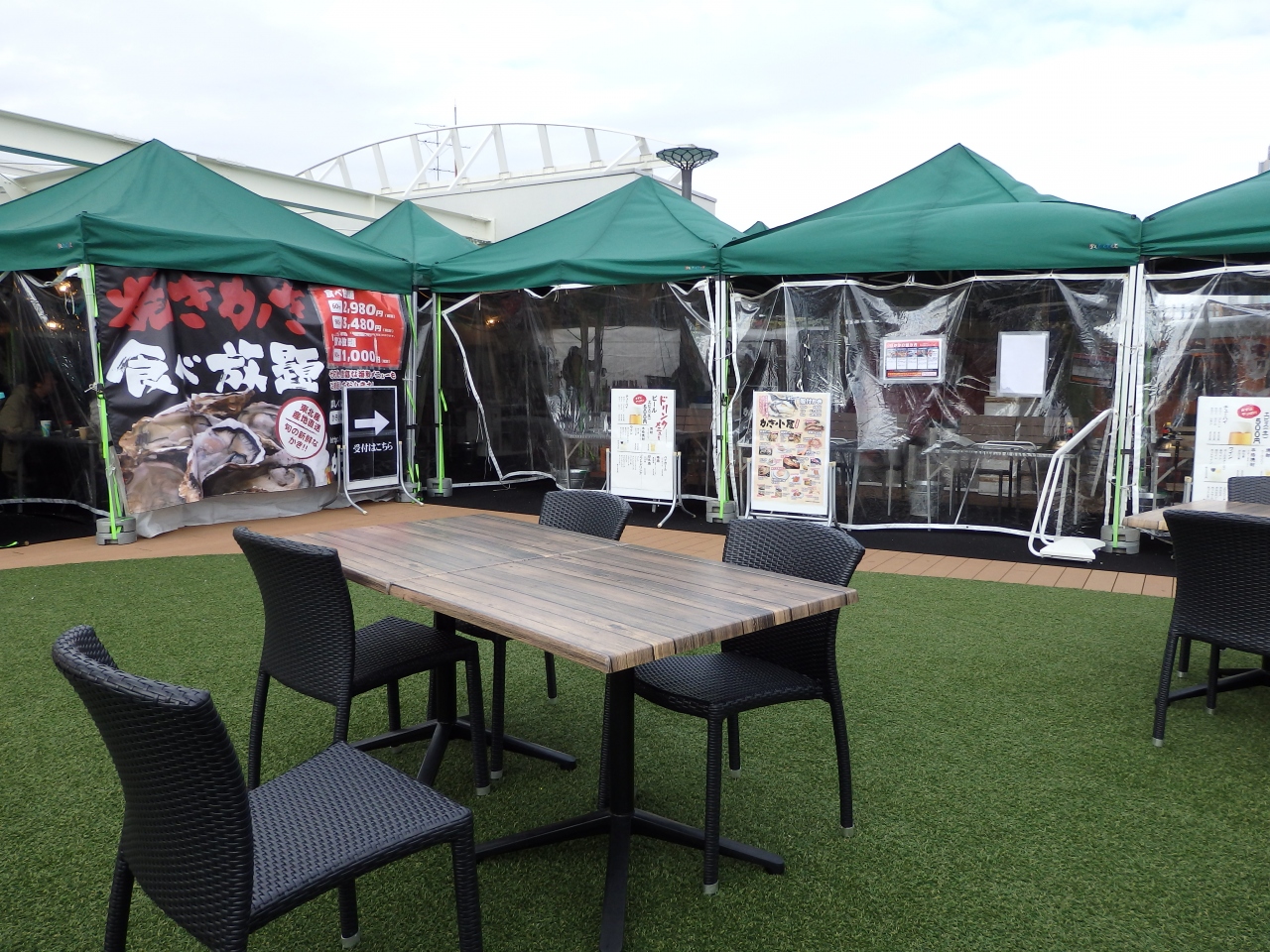蒲田駅直結、東急プラザ蒲田の屋上 かまたえん に冬期限定でOPEN している かき小屋にいってきました。