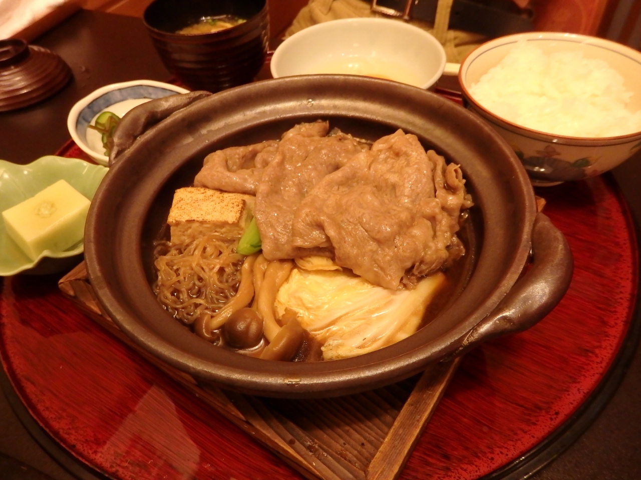 すき焼膳の御飯とタマゴはお代わり自由なので、卵かけ御飯+すき焼汁で満腹。- 旅行時期