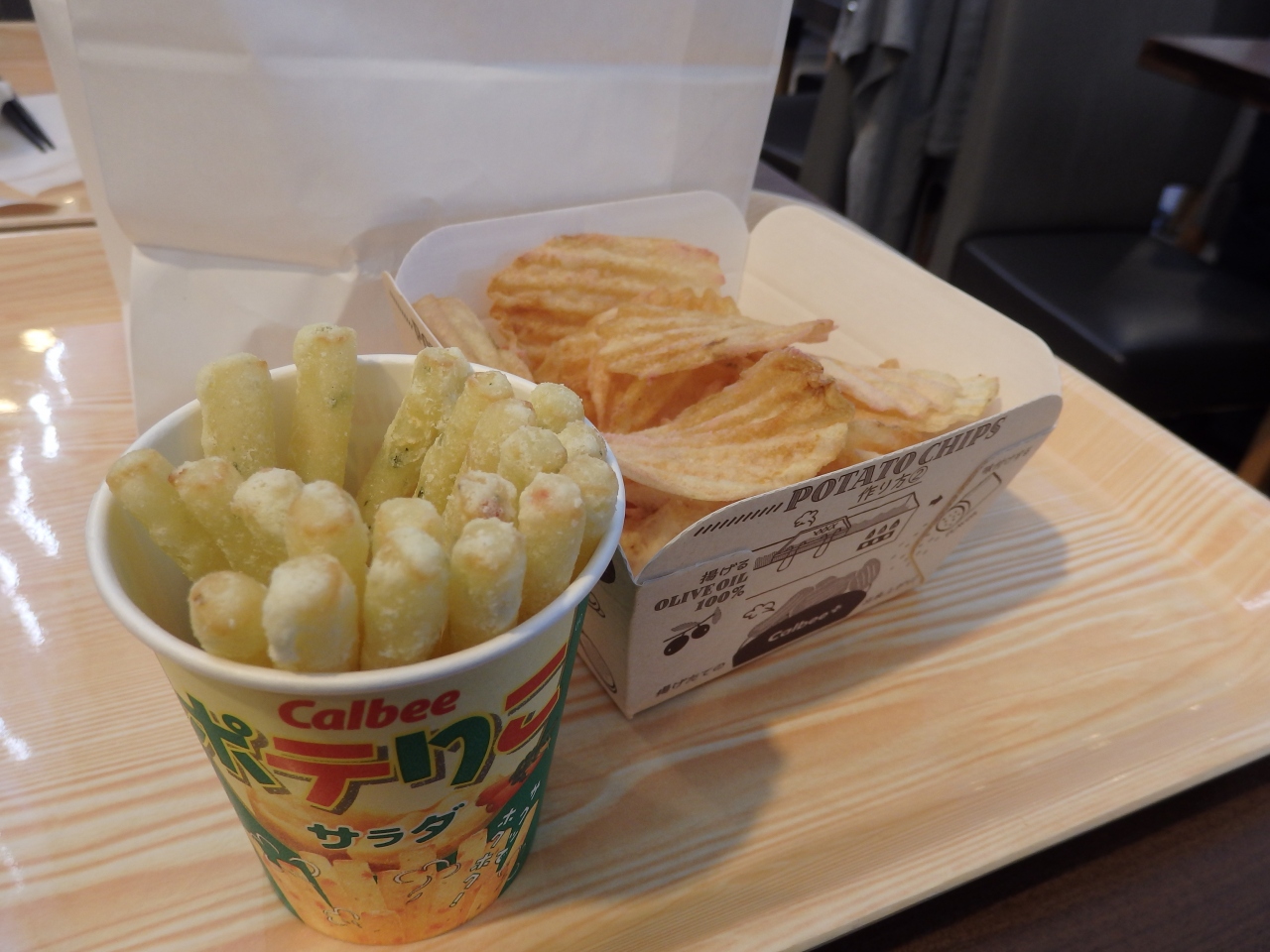 普通のカルビー製品の他、ほっかほかのポテりこや海老名限定 桜えび味のポテトチップスも味わうことができます。
