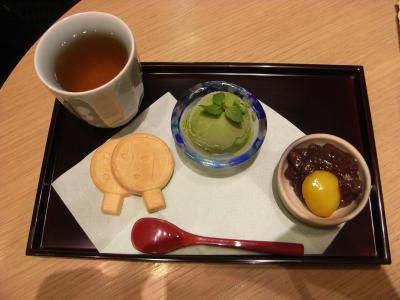 羽田空港第1ターミナルのよーじやに併設されているカフェで『よーじやもなかセット』をいただきました。