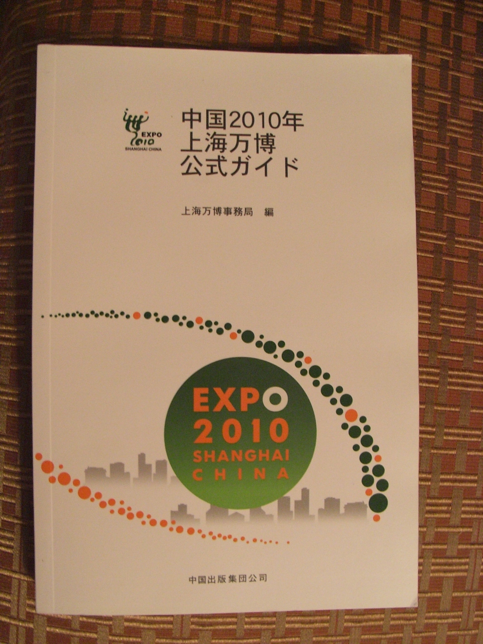 万博会場内にあったテントみたいな本屋さんで日本語ガイドブックを発見し、25元で購入。