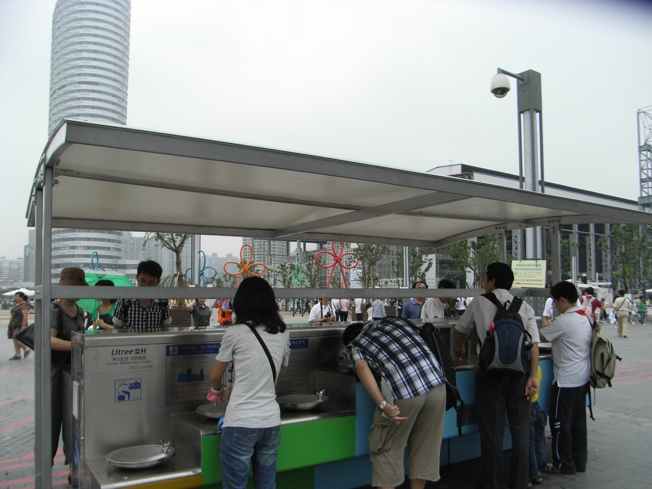 ?1Gateから入場してすぐにコンビニ(ファミリーマート)があったので水を購入したのですが、飲み終わった時点でうまく希望の飲み物を見つけられず、水飲み場で中国の人にまざって水を汲み飲んでみました。