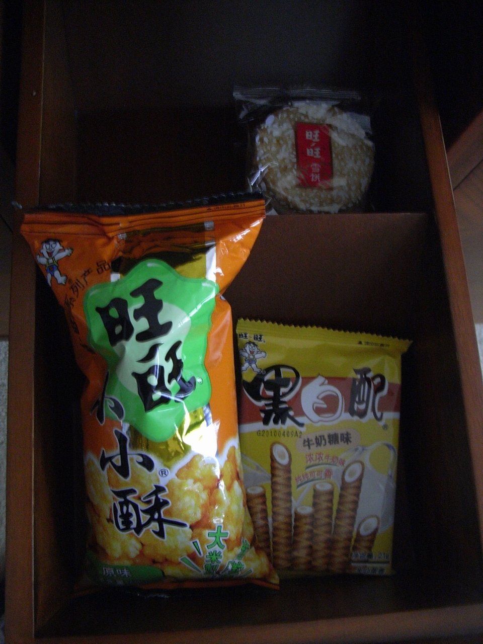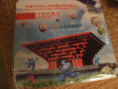 中国の人はぬいぐるみやコインといった形に残る記念品を好むのか、万博会場内のお土産屋さんには万博仕様のお菓子がほとんどありません。