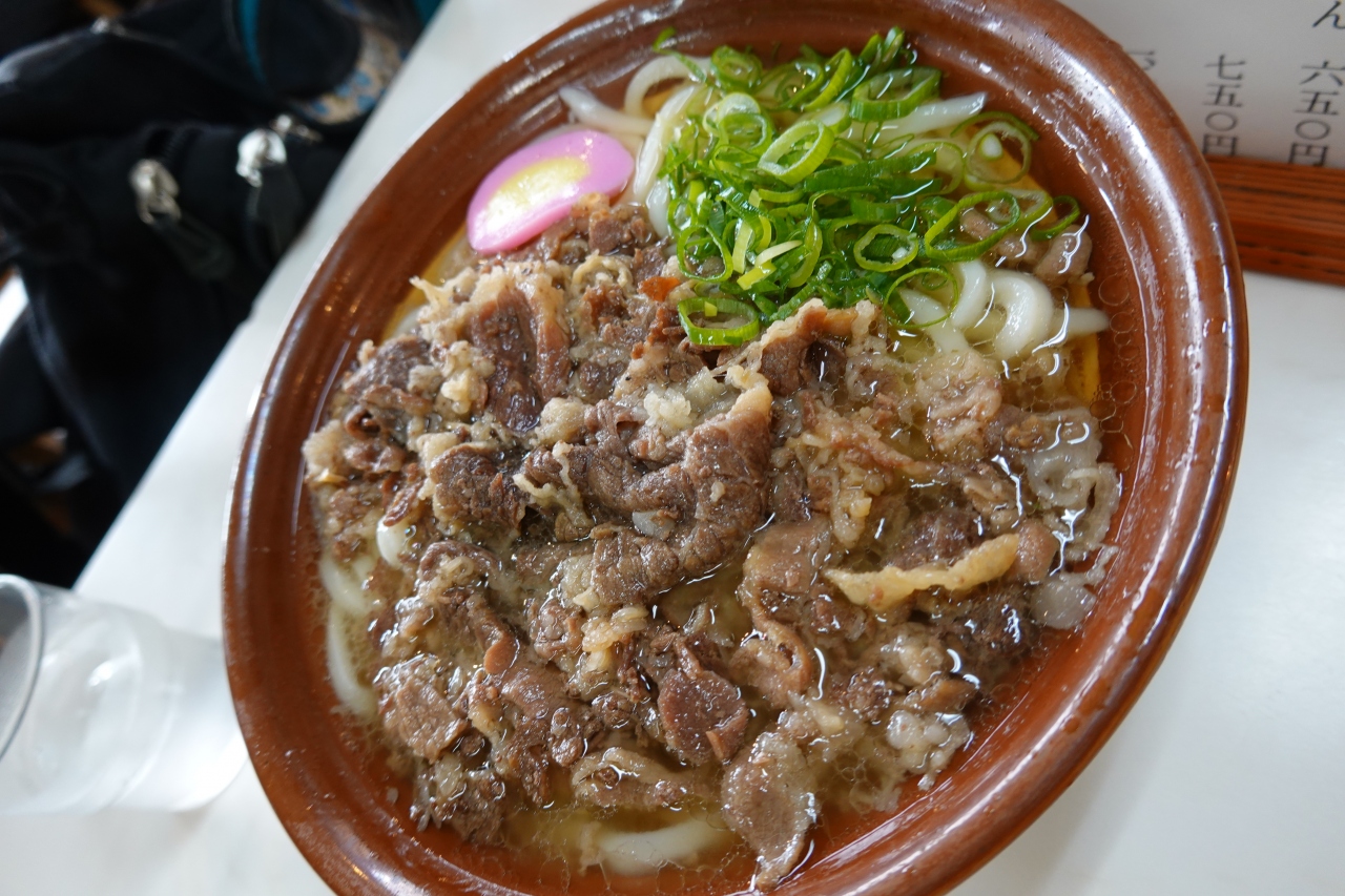 麺鉢でなく すり鉢になみなみと盛られた「肉うどん」に驚きましたが(笑)地元客も観光客も年配の人もガテン系もおこちゃま連れのファミリーも一緒になってボリューミーなやわらかうどんをすする、懐かしい雰囲気のうどん屋さんです。- 旅行時期