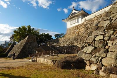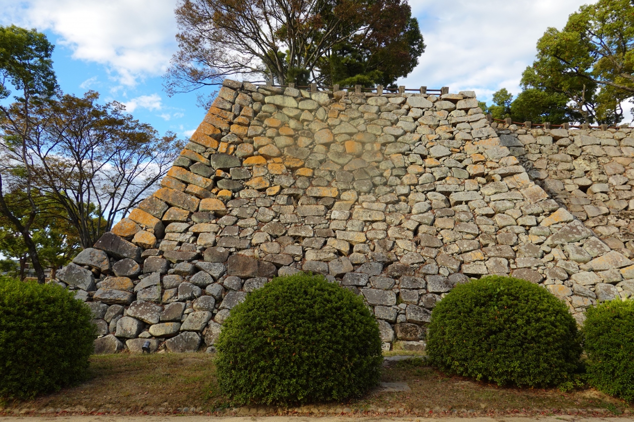 岡山城天守台は不思議な不等辺五角形なので、横から見ると細長くて面白いです。