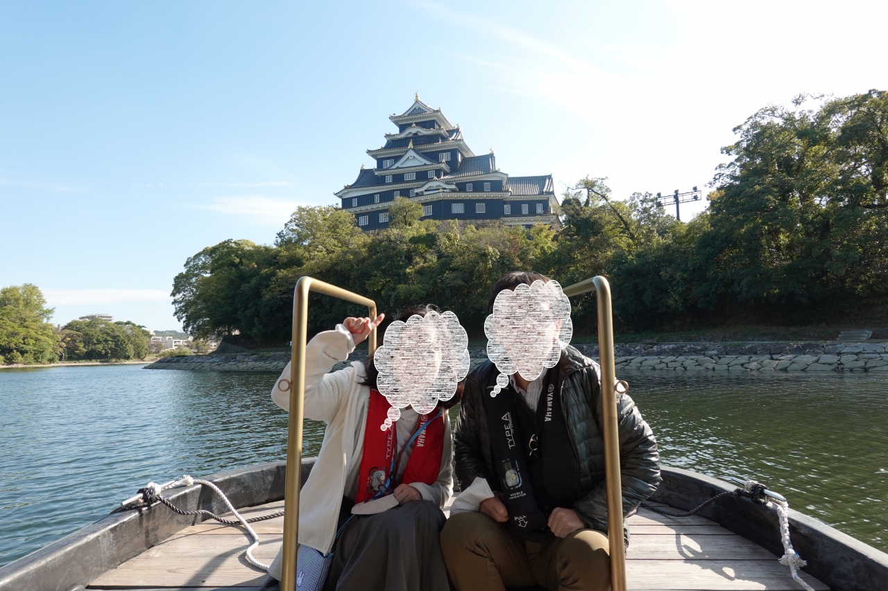 岡山城(烏城)の外堀としての役割をもつ旭川から城を眺められる30分ほどの遊覧クルーズ。