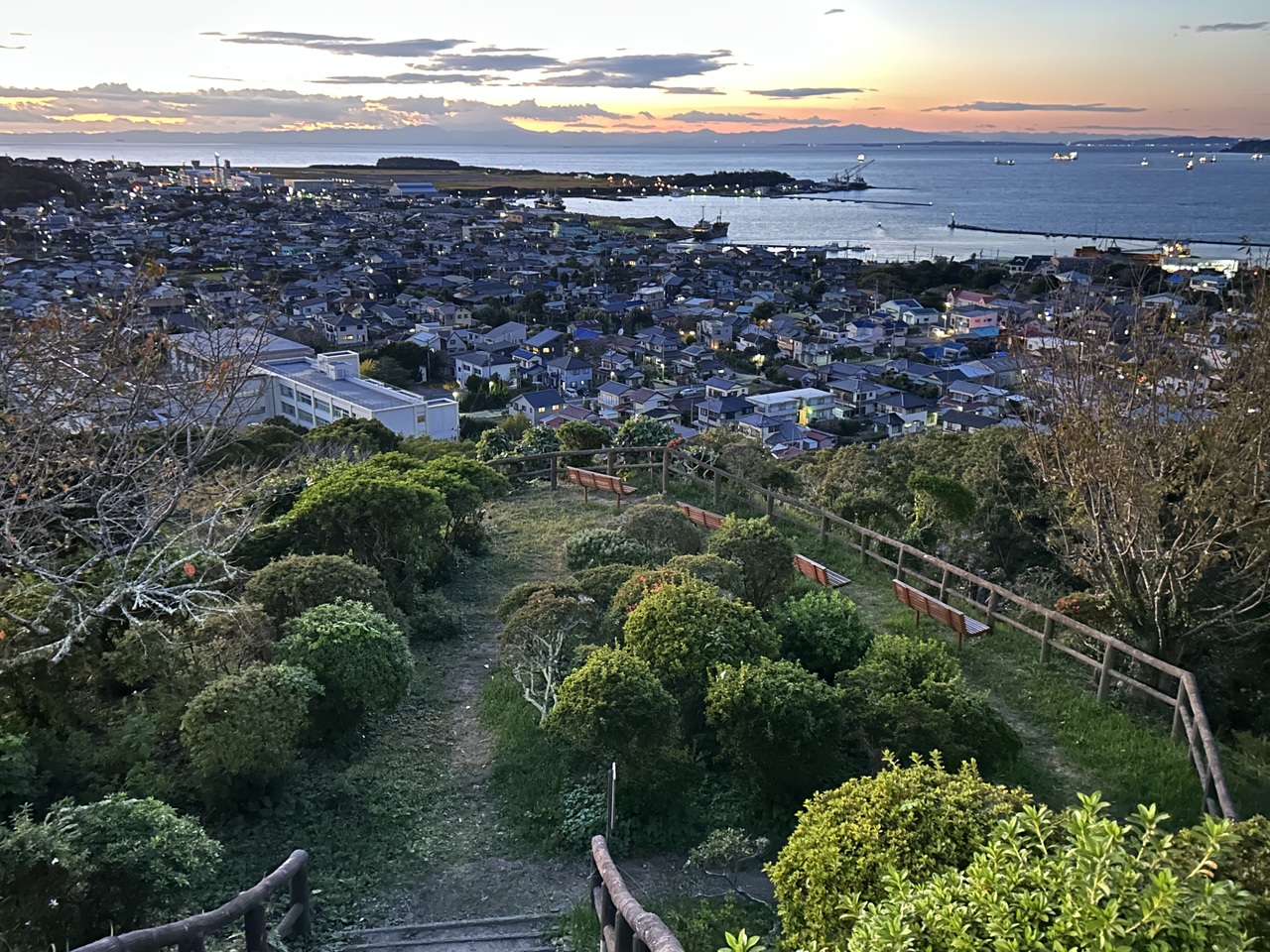 頂上に館山城(八犬伝博物館)が建つ、城跡を整備した城山公園の山頂広場からは館山湾や市街地が一望でき、GWのころには西側斜面につつじが咲き誇ります。