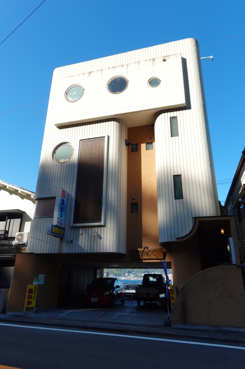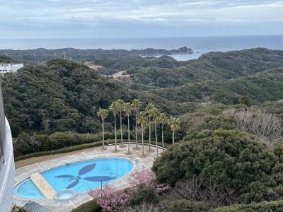 勝浦の街からは少し離れた高台(山ともいう ^_^;)にあり、部屋のベランダからは海が見えます。