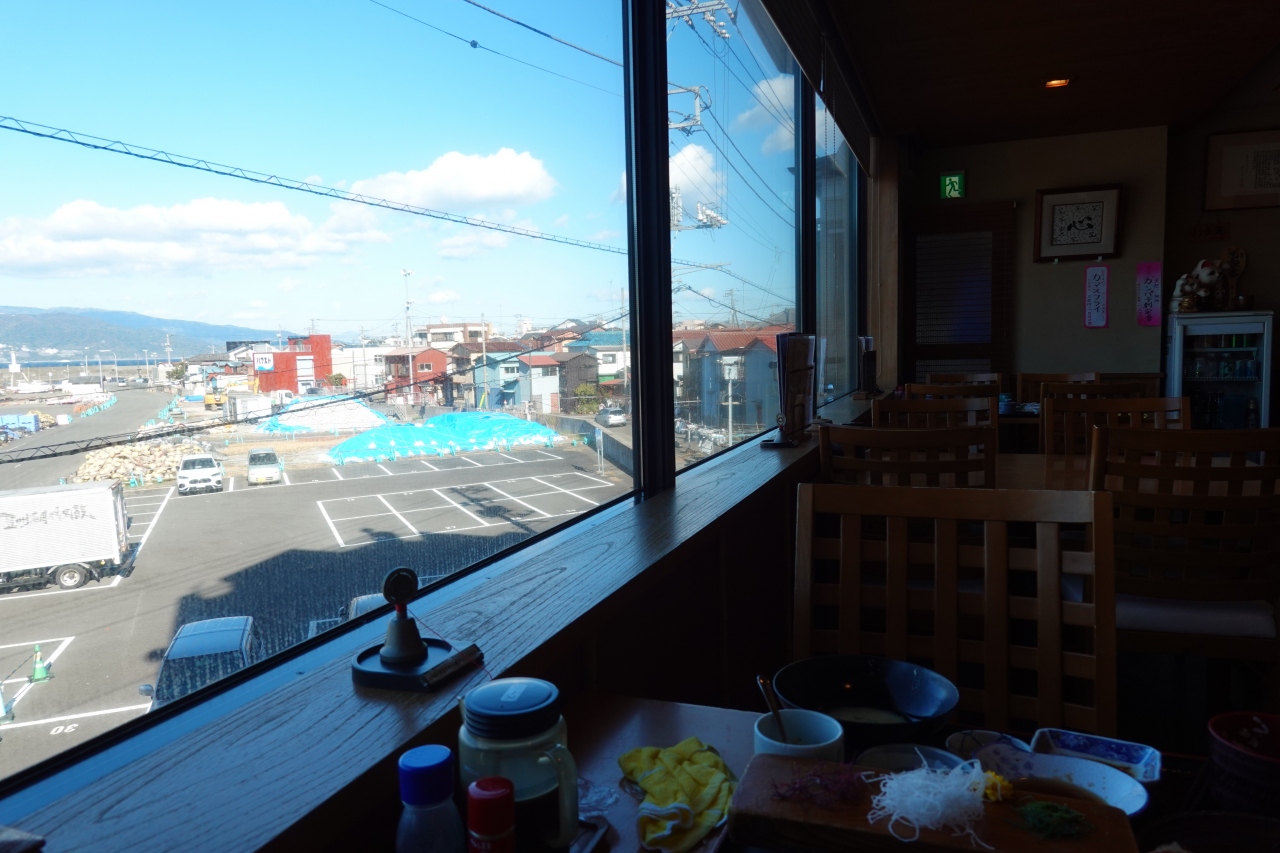 予約していなかったので心配しましたが、11時10分ごろ入店したところ 網代港を見下ろす2階のテーブル席に案内されました。