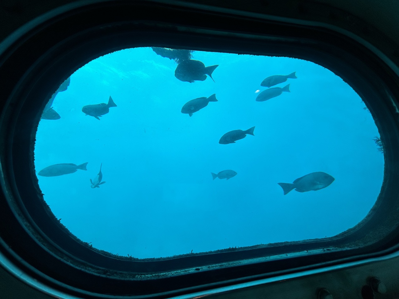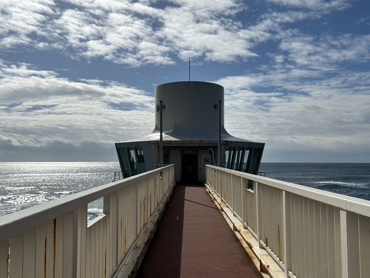 海上の展望室からは大海原を、海中展望室からはオサカナさんの様子を見ることができる、高さ24.4m・水深8mの海中展望塔。
