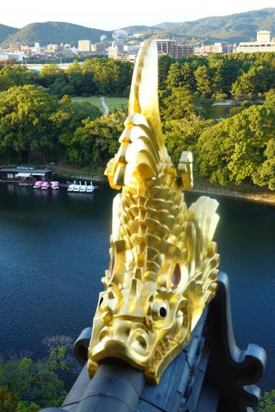 まずは下流の相生橋手前まで行ってUターン、そのあと上流に向かうので どちら側に座っても烏城を見ることができます。